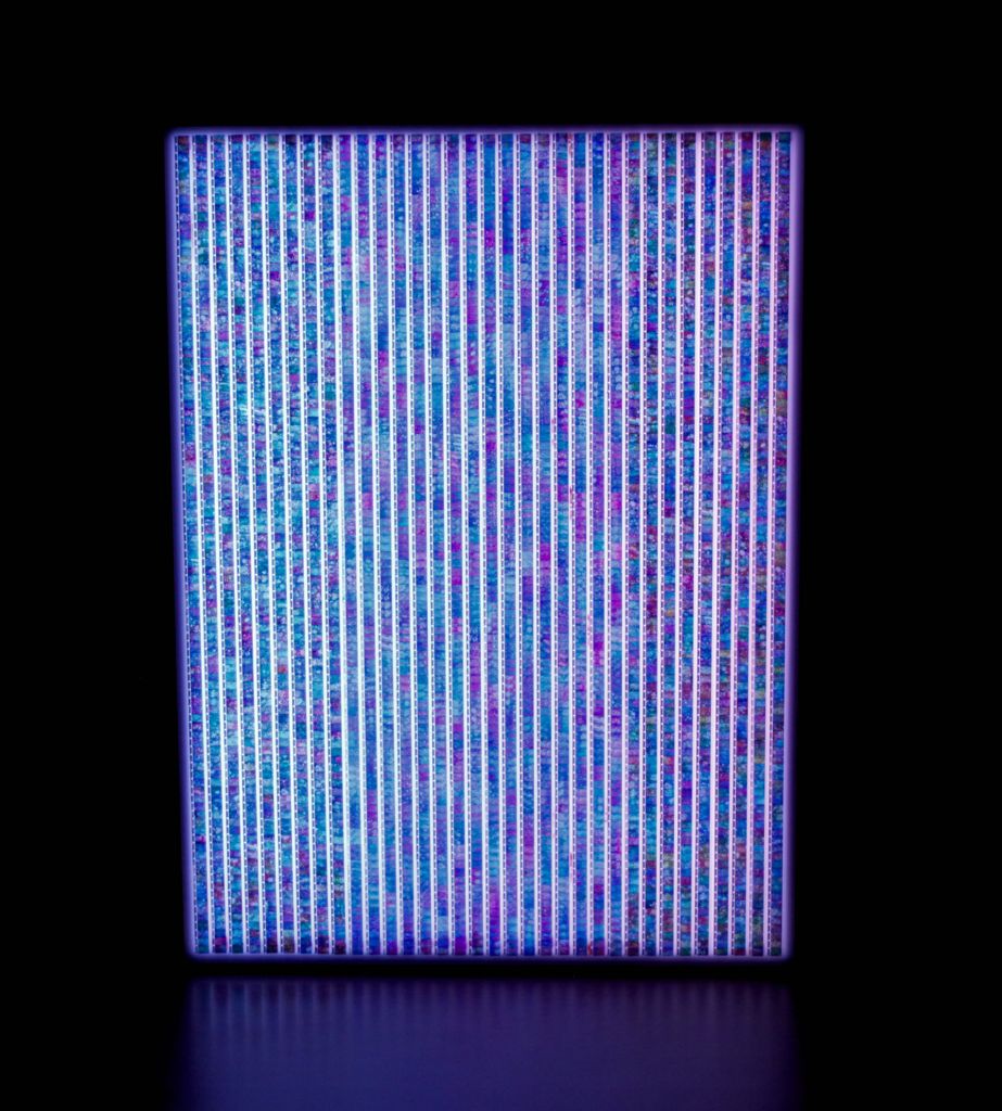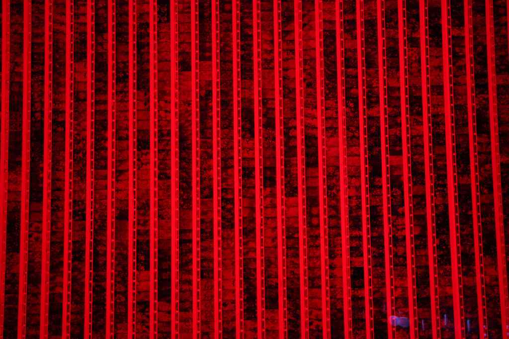 The light panel contains copies of the films projected on 16mm. The filmstrips are disposed horizontally next to each other, creating a plane. Temporality is taken out of the filmstrips and the films rest inert, leaving their nature as a succession of points in time and acquiring a new one as a disposition of points in space. The panel, build with a similar aspect ratio as a 16mm frame, becomes a metaphorical single frame that contains all of the images that you see projected by the rest of the installation. Ten simple and brief light animations (re)animate the inert filmstrips, imbuing again time in the panel. The plane (the panel) becomes again a point in time detached from its surroundings and this spatiotemporal cycle of continuously changing characteristics might or might not start again.