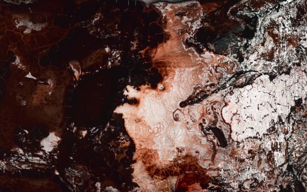 In a cave situated between the ridges of the fingerprints of a human being, a primordial encounter with matter, light and sound unfolds. The Katabasis, the western mythological descent to the underworld, is here stripped of its mythical connotations to reveal only its narrative function, the confrontation with the past and with what has been lost.