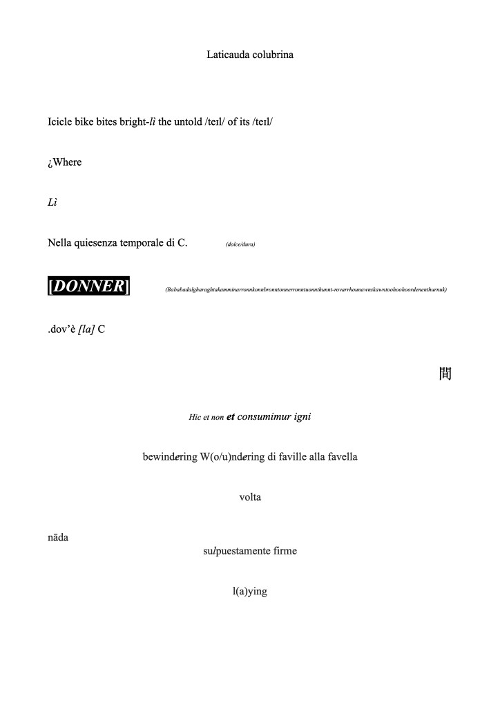 laticauda colubrina 2018, multilingual poem a multilingual poem written in a moment of joycean ecstasy, it contains words in italian, english, german, spanish, latin, japanese and sanscrit