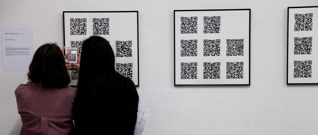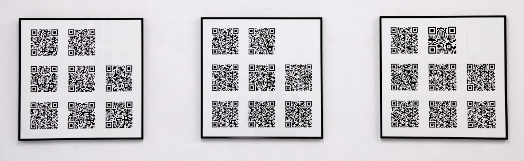 QR codes have the characteristic of being born out of the digital but functioning only outside virtual space. These representations of malleable cyber-space appear visually almost as simple as suprematist artworks, yet they do not have that unity of matter and form that Malevich hoped to reach with his work. The cyber-space to which a QR code refers can be endlessly changed.
